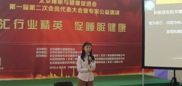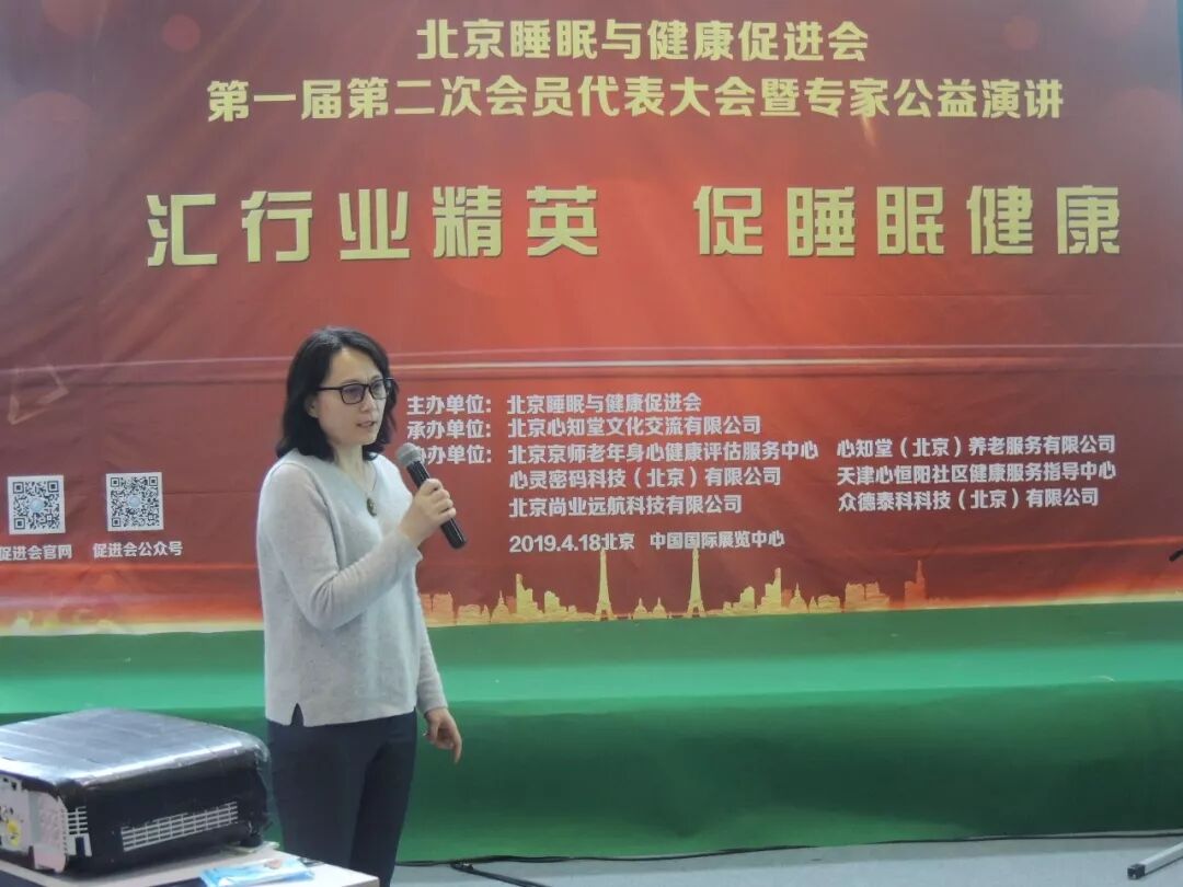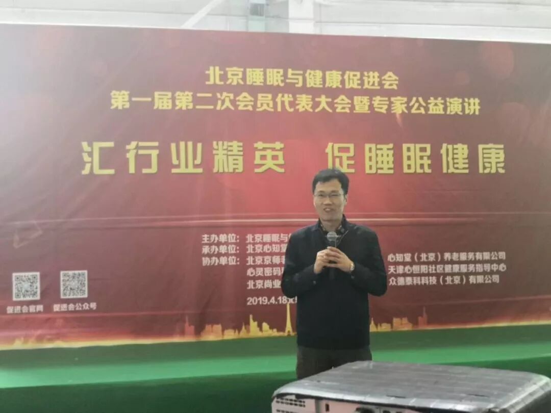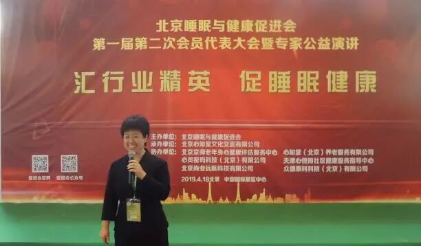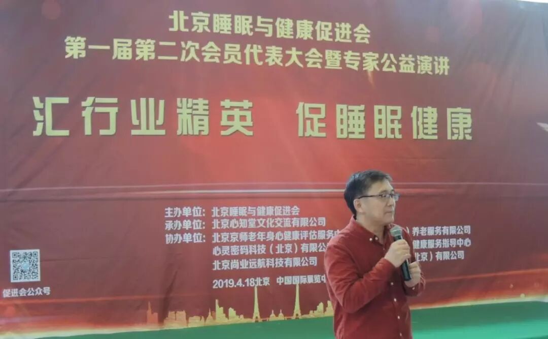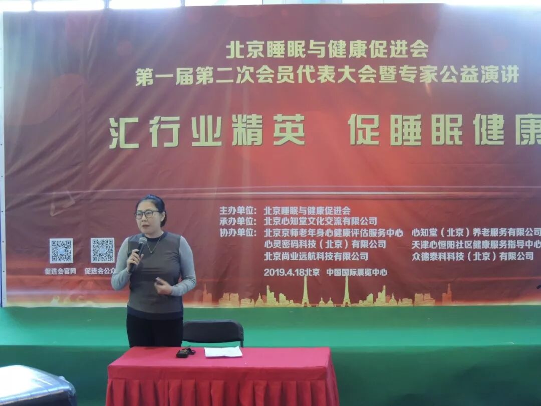 2019年4月18日在第25届健康博览会举办中的中国国际展览馆的6号馆的论坛区,北京睡眠与健康促进会成功举办了第一届第二次会员大会暨专家公益演讲。北京睡眠与健康促进会共有会员55名,实际参会会员43人,参会人数超过会员总数2/3,符合北京睡眠与健康促进会章程,北京睡眠与健康促进会会员大会通过举手表决,全票通过选举产生新任理事陈虹博士和时勘博士。随后举行了北京睡眠与健康促进会理事会议,会议经过民主选举,选举时勘博士成为北京睡眠与健康促进会副会长,参会的有促进会领导有会长郭兮恒,副会长田宝伟,理事有肖雷教授,王丰教授,监事长王彦植,秘书长黄芳,副秘书长史宇等领导,理事总数人,参会理事有7人,超过理事总数2/3,符合理事会议召开条件。安贞医院薛玉国医师受常务副会长黄连军委托参加了本次大会。